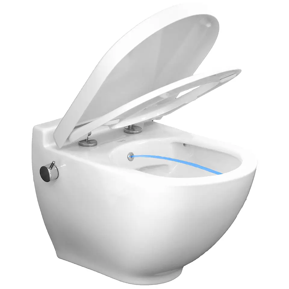 Dusch-WC stellen eine harmonische Mischung aus Funktionalität und Eleganz dar. Mit schlanken, modernen Linien gestaltet, integrieren sie nahtlos fortschrittliche hygienische Funktionen wie Wasserdrucksteuerung und Wasserstrahldüsen, die den Benutzerkomfort und die Sauberkeit verbessern, während der minimalistische Look erhalten bleibt, der zu jeder Badezimmereinrichtung passt. Ob es die stromlinienförmige Gestaltung oder die innovative Technologie ist – jedes Teil des Designs ist darauf ausgelegt, die tägliche Routine in ein luxuriöses Erlebnis zu verwandeln.