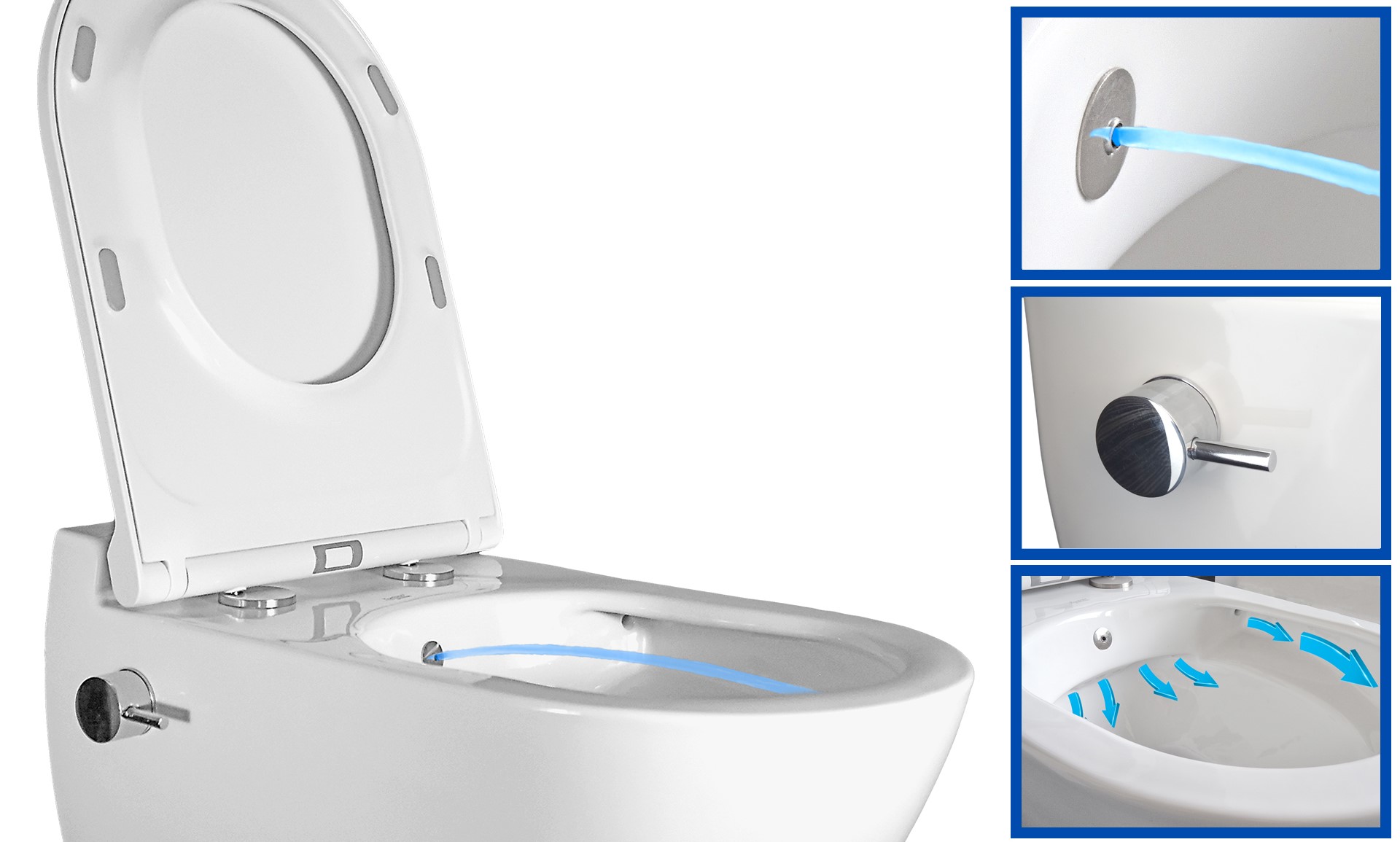 - Dusch-WC aus Sanitärkeramik mit leicht zu reinigender Oberfläche